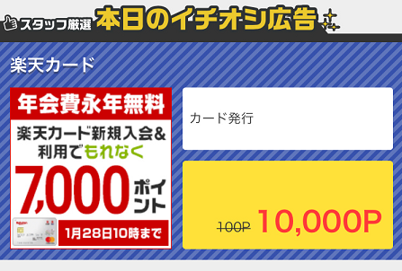 ポイントサイトのモッピーで楽天カードの発行のみが10,000pt(10,000円相当)と高騰しています。