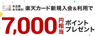 何度も言いますが楽天カードは「年会費永年無料」が特徴です。それなのに7,000円分のポイントをもらえるのはすごいキャンペーンですね。