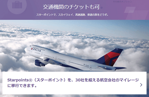 スターポイントは航空会社へのマイルへ交換する際に、20,000ポイントごとに5,000マイルのボーナスが付きます。つまりマイルへの移行率は1.25倍ですね。